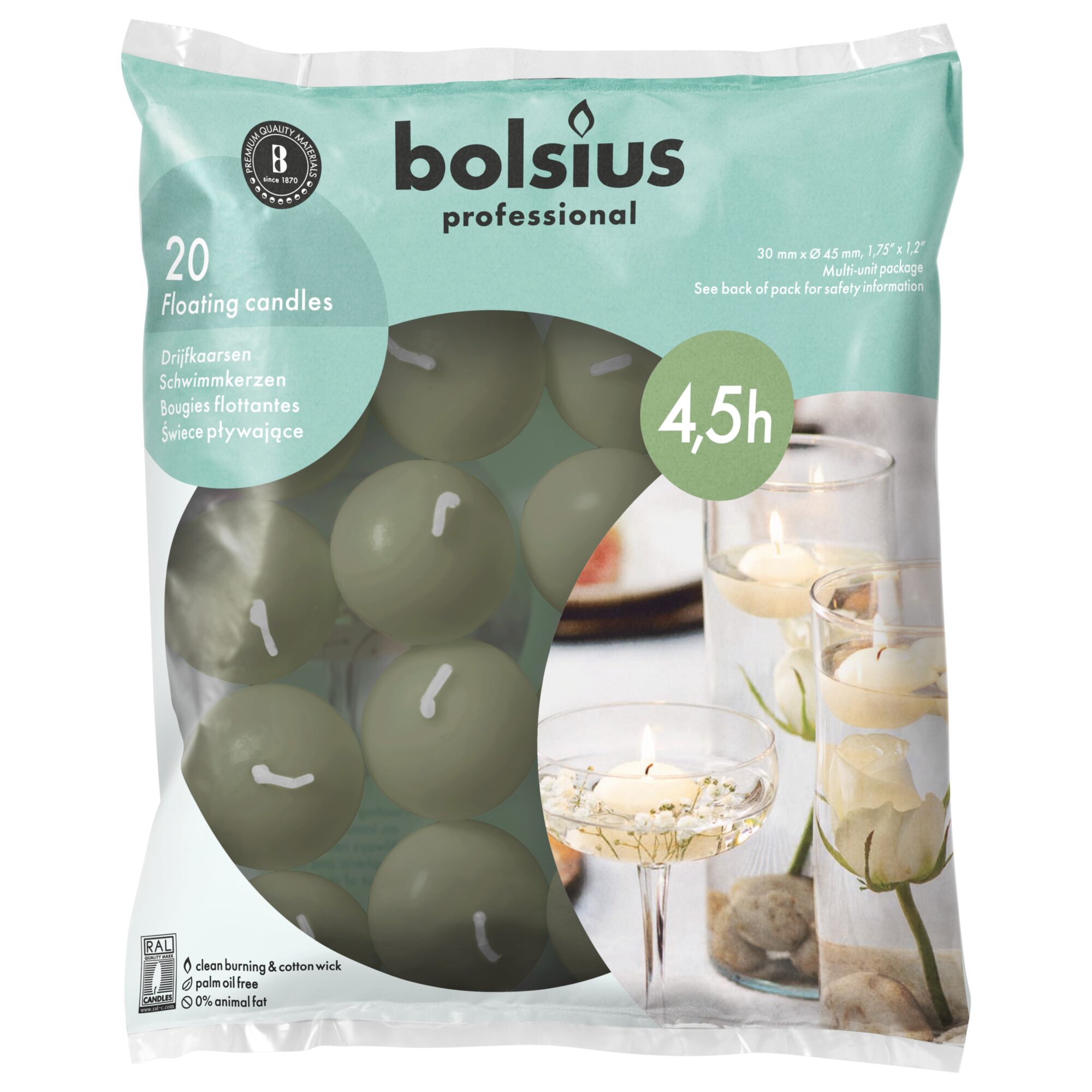 Floating candle light offers a special way to apply a light accent to your interior. The reflection of the bright flames in the water creates an enchanting atmosphere. 4-5 Hour burn time with a beautiful bright flame. 30mm high x 45mm wide
